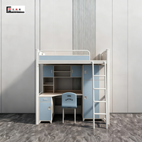Litera de loft de almacenamiento para estudiantes estable de metal fácil de instalar con escritorio para trabajadores escolares dormitorio de estudiantes